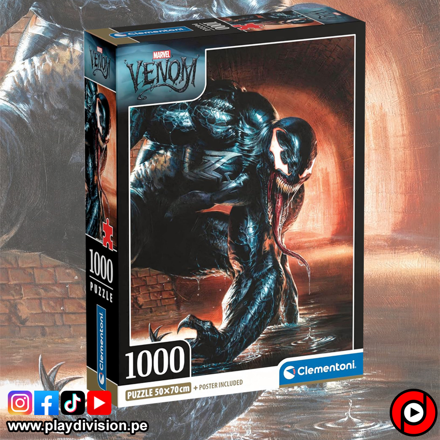 Rompecabezas de la marca Clementoni de 1000 piezas con imagen de Venom, el villano más oscuro y diabólico enemigo de Spiderman del universo Marvel.